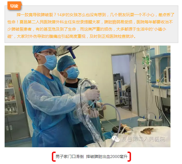 脾脏脆弱伤不起 摔一跤竟致脾破裂