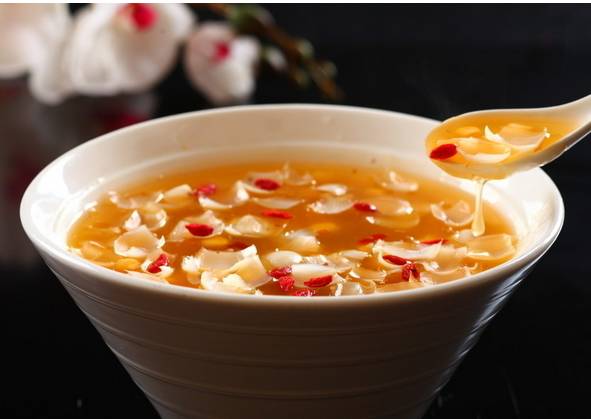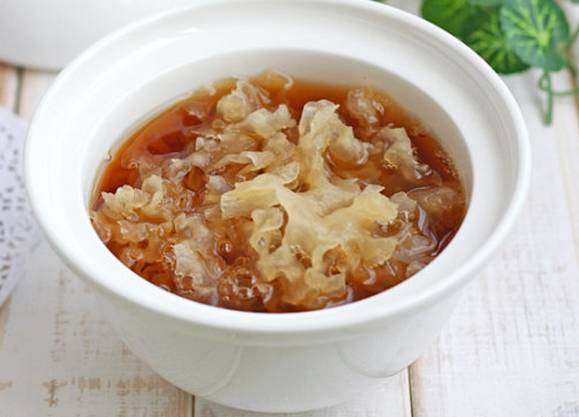 银耳与冰糖共煮,水沸后打入鸭蛋,每日服2次。滋阴清肺,止渴生津。