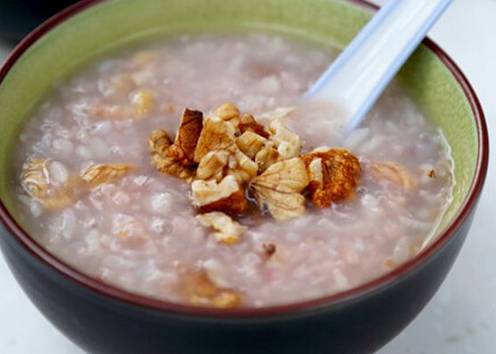 白果仁5克、甜杏仁10克、胡桃仁10克、粳米50克。