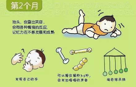 开始学习抬头,发现自己的手,偶尔会露出笑容,会有各种情绪的反应