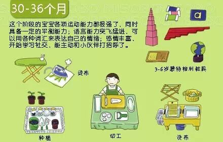 独立穿衣服、折衣服;也可以做些家务,如擦桌子、擦鞋等;语言能力得到进一步提升,可以跟别人展开对话