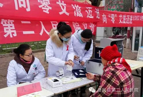 12月1日上午8点开始,医院医护人员在建设路中段中心转盘设置咨询台,悬挂宣传条幅。活动一开始,群众纷纷来到咨询台测量血压,并咨询有关艾滋病预防知识,医务人员还在路旁向过往的群众发放安全套和宣传单(手册),并向他们讲解有关艾滋病的防治知识。 此次宣传活动的目的是宣传艾滋病的基础知识和如何有效预防艾滋病的措施,以及在日常生活中需注意的相关事项;如何正确对待身边患艾滋病的人,树立正确的对待艾滋病的态度,使得每一个艾滋病患者都有一个宽松的生存环境,不再敌视社会,而与周围人群和谐相处。通过类似宣传让更多的人了解艾滋病、关注艾滋病。 本次宣传活动共测量血压60余人,群众咨询120余人,发放宣传单、宣传手册260余份。 —— 医务人员为前来咨询的群众进行健康检查 —— 医务人员为前来咨询的群众讲解健康知识 —— 寒风中依然洋溢着笑容的医务人员