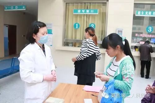 导诊台随文贞告诉小编,夏邑二院南区目前每天的门诊量在600到700人次之间。“咱们一楼的这个台子地理位置好,从外面进来、从里面出去的病人,有事儿没事儿都要过来问一句,人均一句,这就得很多个问题,如果算上病人家属,你就想象得到我们一天要说多少话了。”
